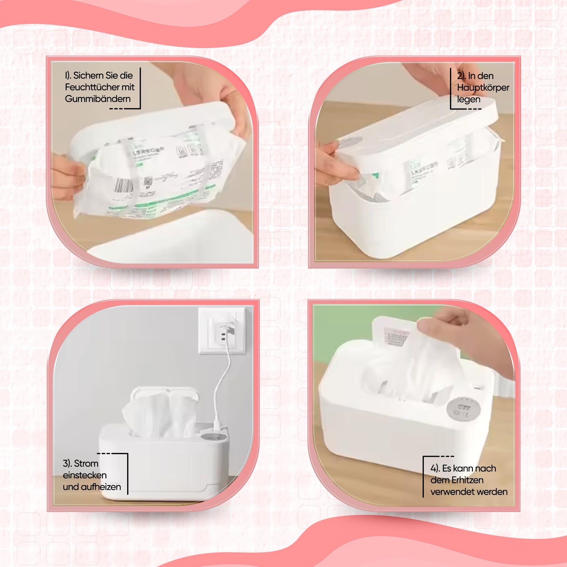 - Sanft & Hygienisch: Erwärmt Feuchttücher gleichmäßig, ohne sie auszutrocknen.